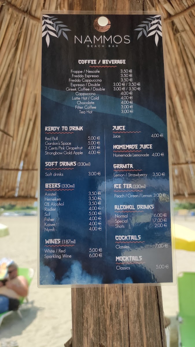 Moreover, customers rave about the attentive service at Nammos. Florin Mohican highlighted the crystal clear waters, making it a perfect place to swim, while Bogdan Rodic appreciated the friendly staff. The promise of free sunbeds on the condition of ordering a refreshment (around 5 euros) creates an atmosphere of camaraderie, allowing you to sip on a chilled drink while soaking in the breathtaking coastal views. Whether you indulge in a fresh fruit smoothie, a classic Greek coffee, or a light snack, the café encourages you to relax, enjoy, and linger a little longer.